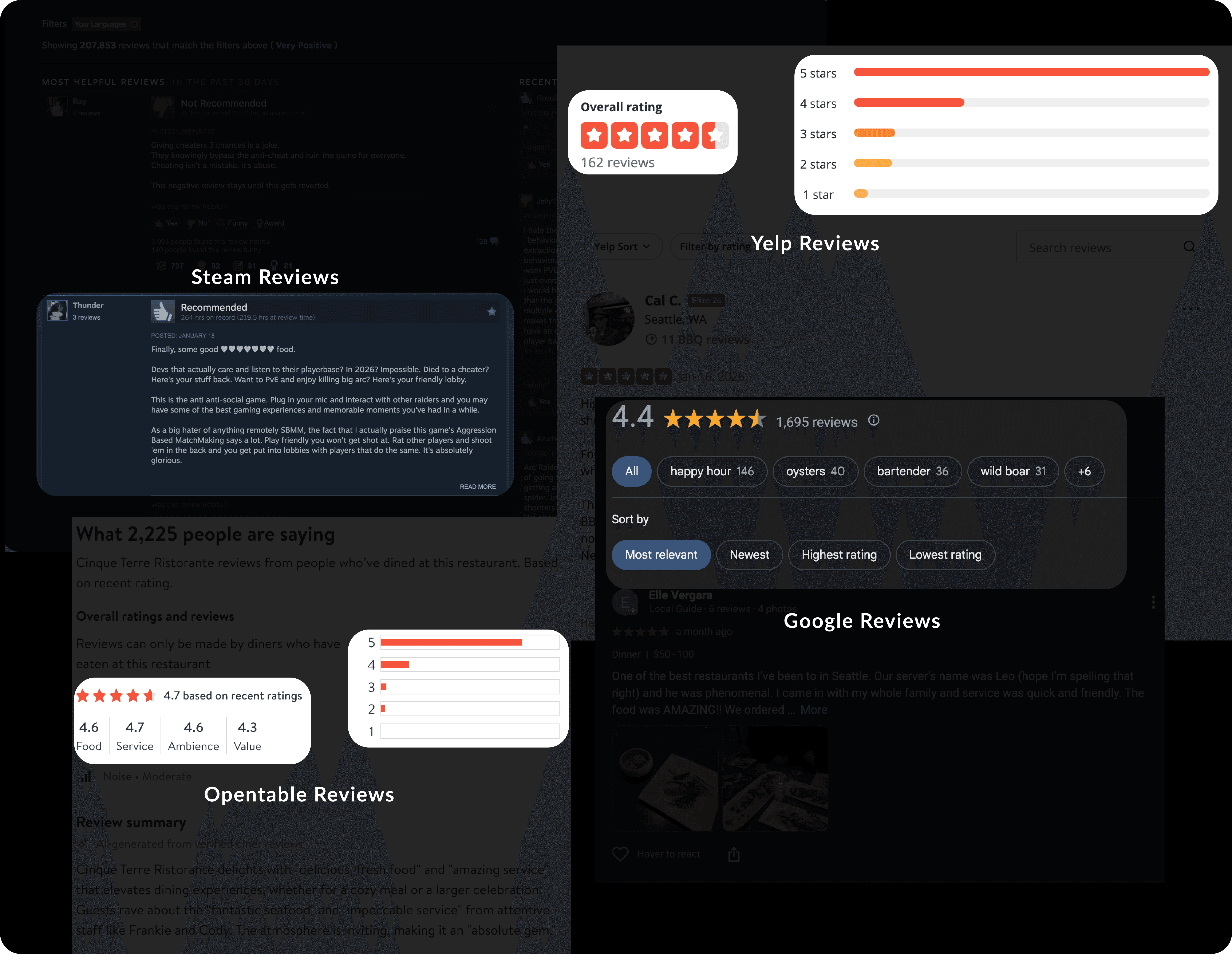 I examined customer review implementations across other similar apps to guide my design decisions.